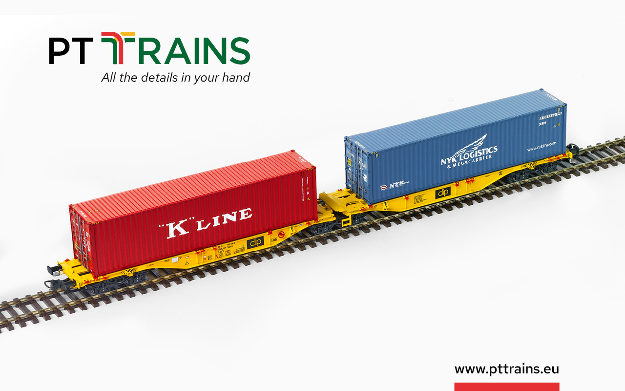 H0 1/87 Scale Models Wagon CLIP INTERMODAL Sggmrss Ep.V-VI 33 51 4961 130-3 + K LINE 40′ HC KKFU7865262 + NYK 40′ HC NYKU5660393